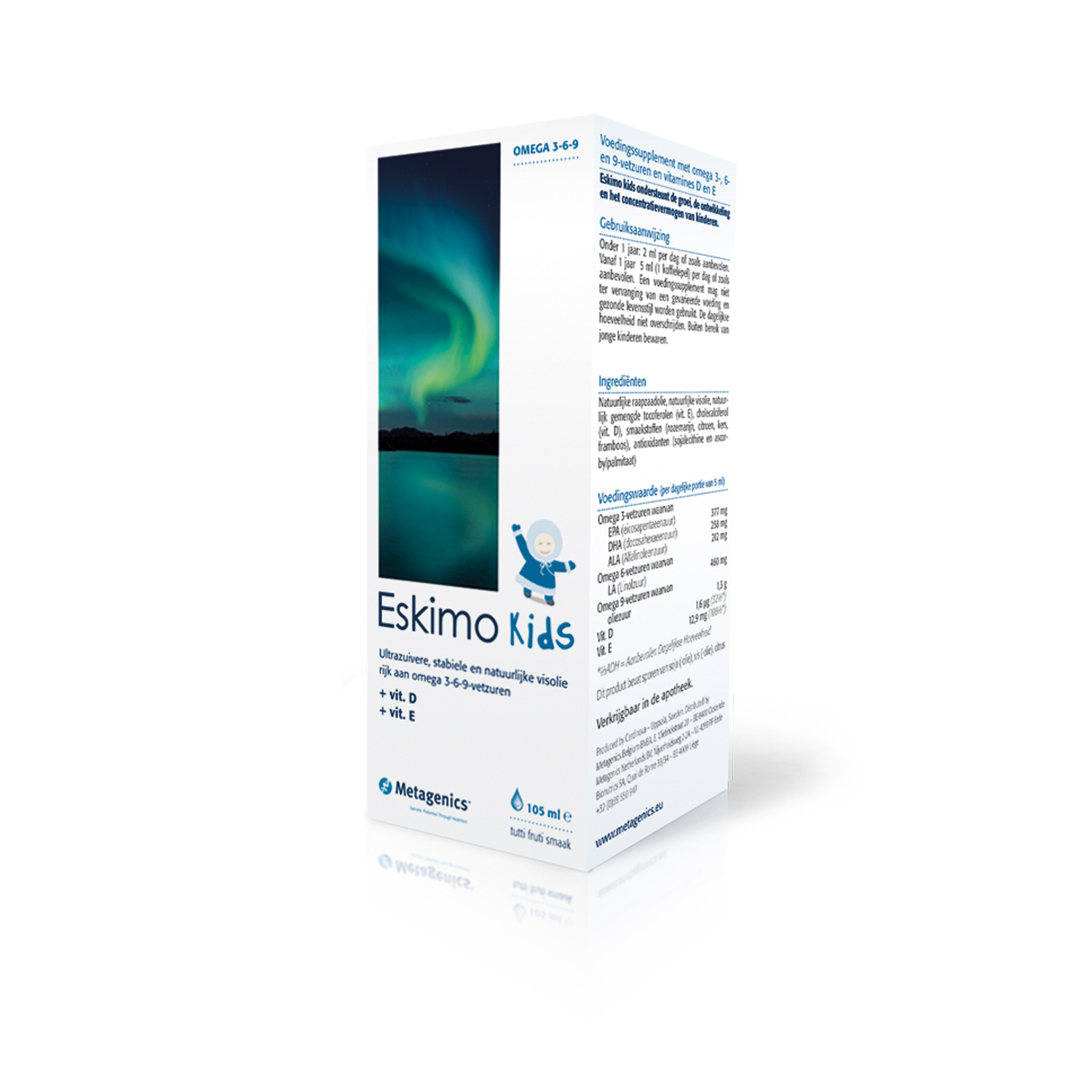 Eskimo® kids is rich in omega-3,-6 and -9 fatty acids.