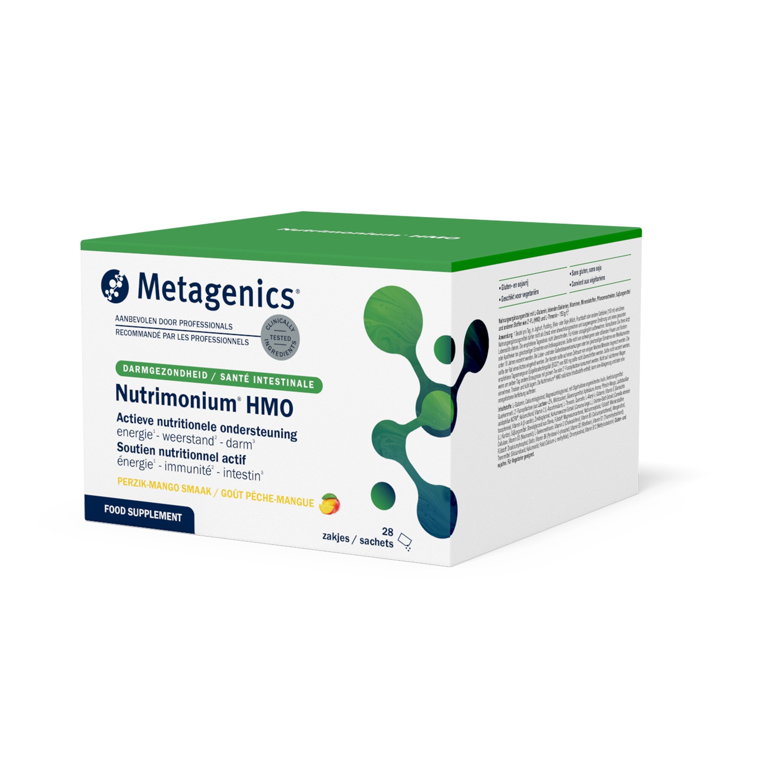 Nutrimonium HMO ondersteunt het energieleverend metabolisme (B-vitamines, magnesium en calcium), de normale werking van het immuunsysteem (Vitamine A, C, D, selenium en zink) en draagt bij tot de instandhouding van normale slijmvliezen, zoals in de darm (Vitamine A).