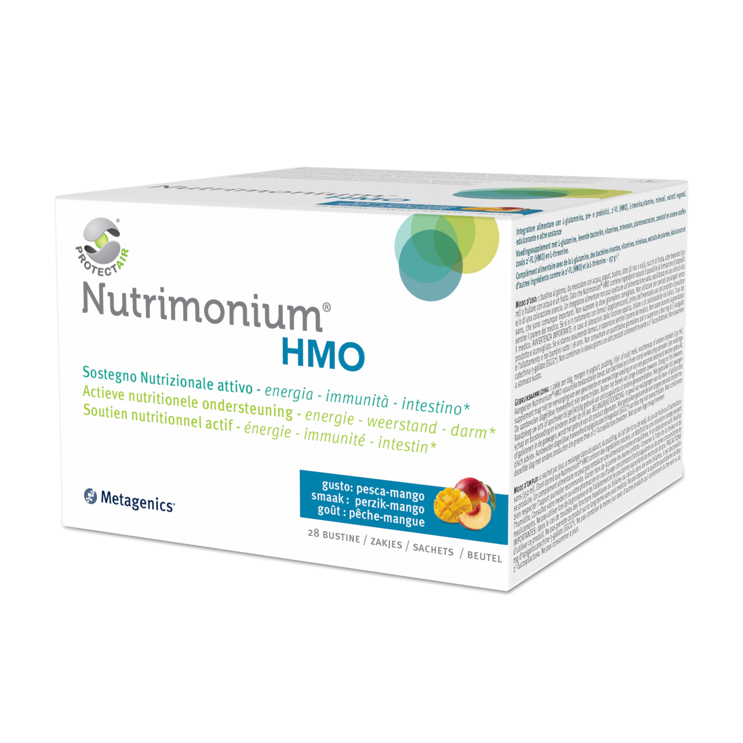 Nutrimonium HMO ondersteunt het energieleverend metabolisme (B-vitamines, magnesium en calcium), de normale werking van het immuunsysteem (Vitamine A, C, D, selenium en zink) en draagt bij tot de instandhouding van normale slijmvliezen, zoals in de darm (Vitamine A).